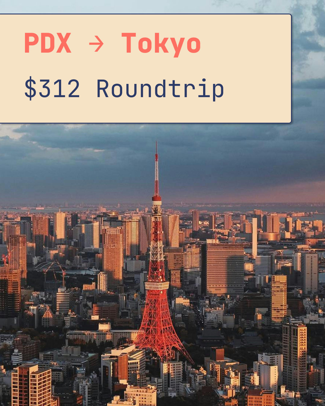 Join 3,500+ Portland travelers who've saved an average of $420 per flight this year.